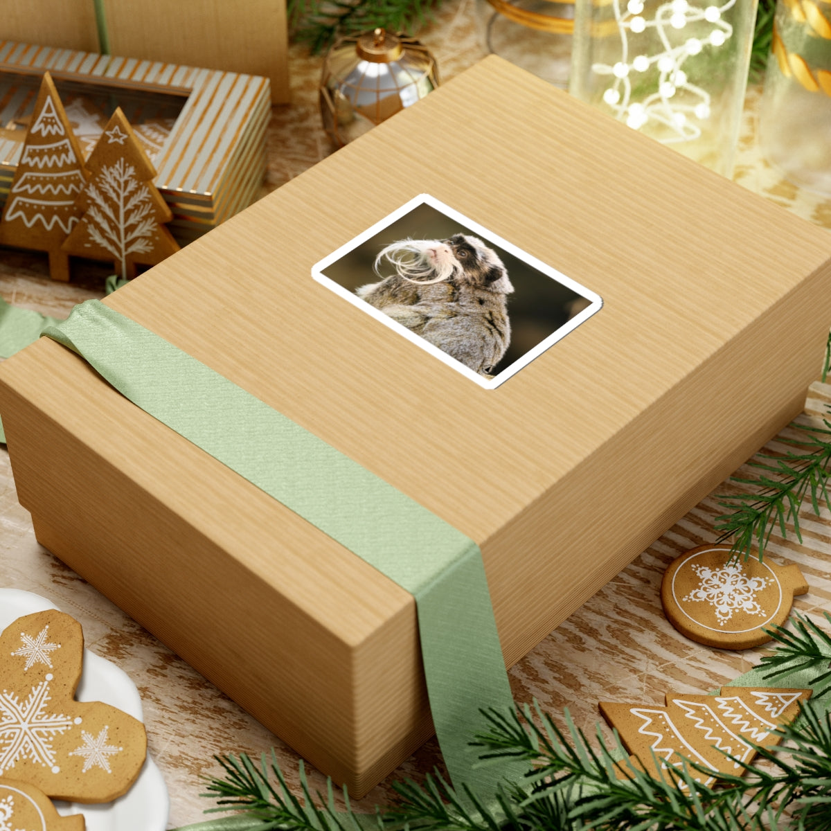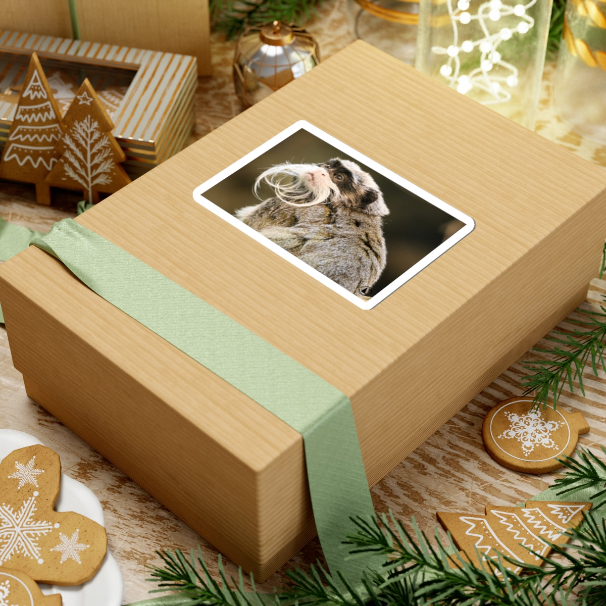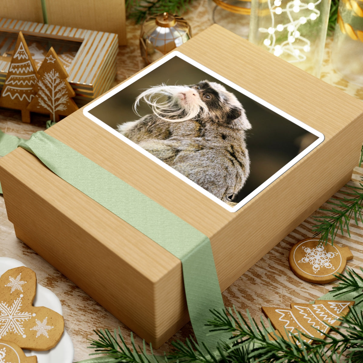 A glossy kiss-cut sticker featuring a dignified emperor tamarin portrait — delicate white mustache and all. The rich, true-to-life colors pop against a smooth, scratch-resistant finish that clings cleanly to laptops, journals, and other flat surfaces. Lightweight and playful, it brings a quiet sense of wonder and a touch of wild humor to everyday gear. Apply it slowly for a bubble-free finish and choose between white or transparent backgrounds and four sizes to match your space.