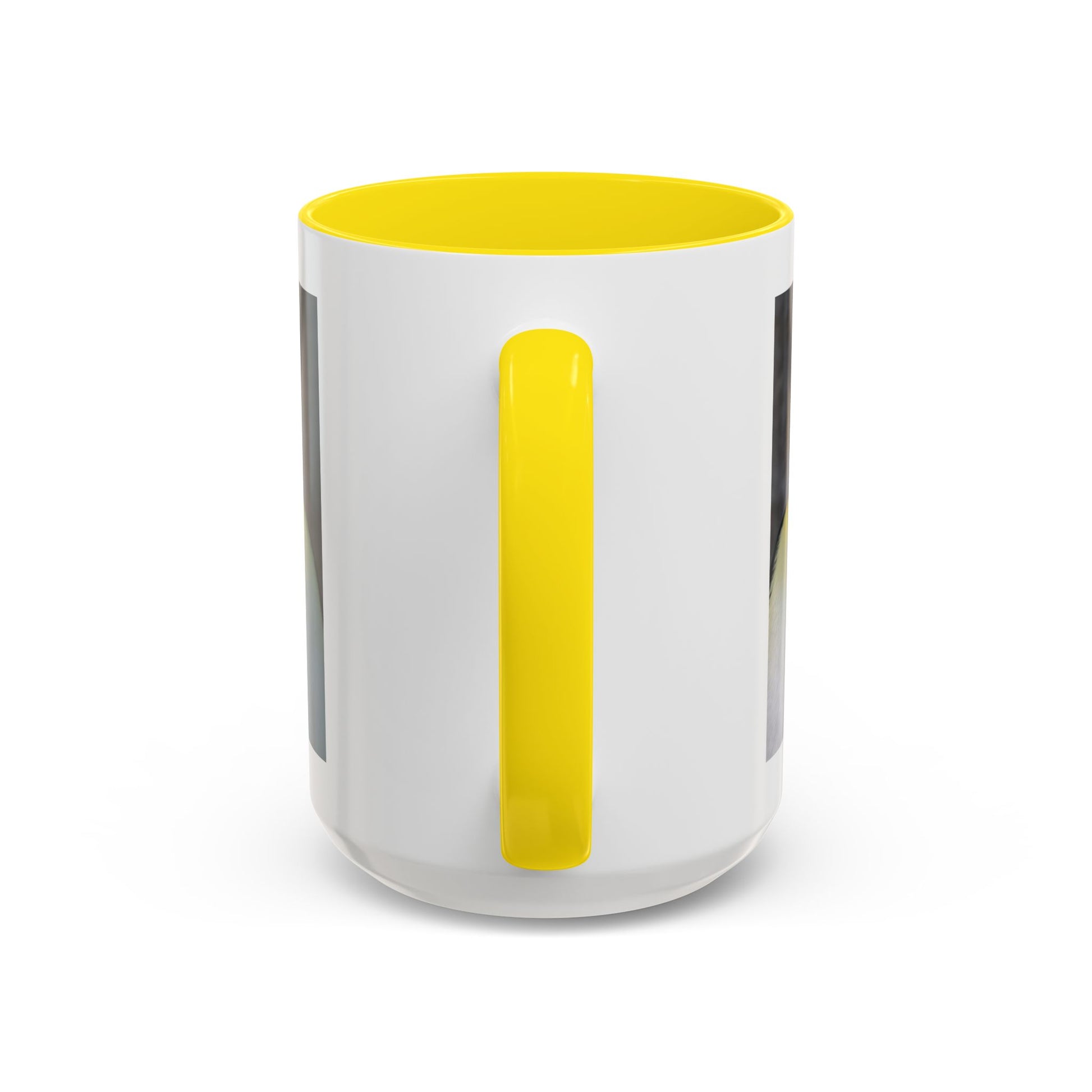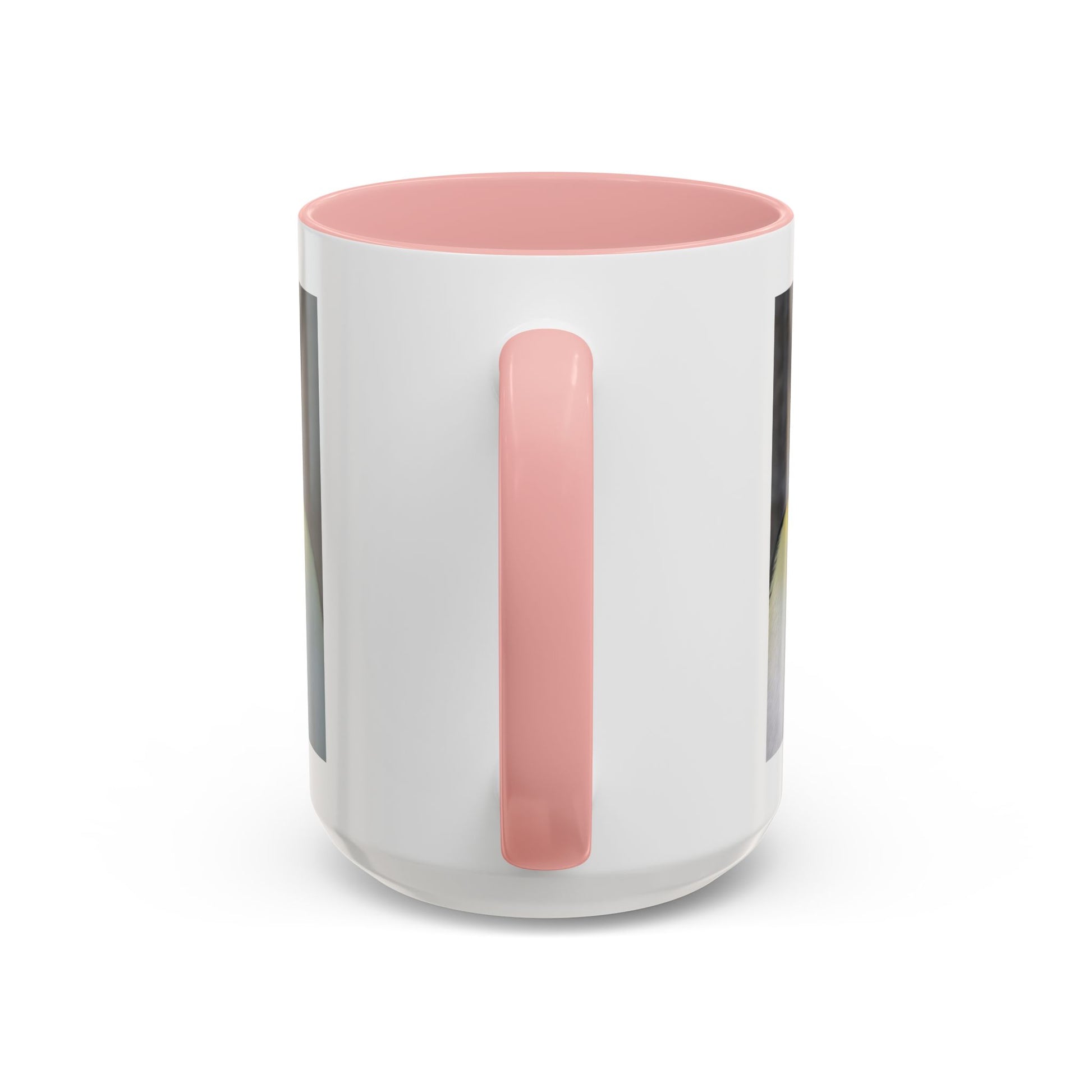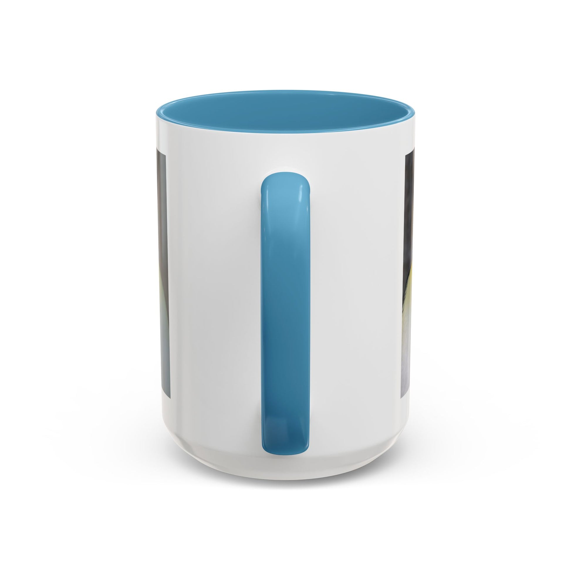 - White ceramic body with colored interior and handle