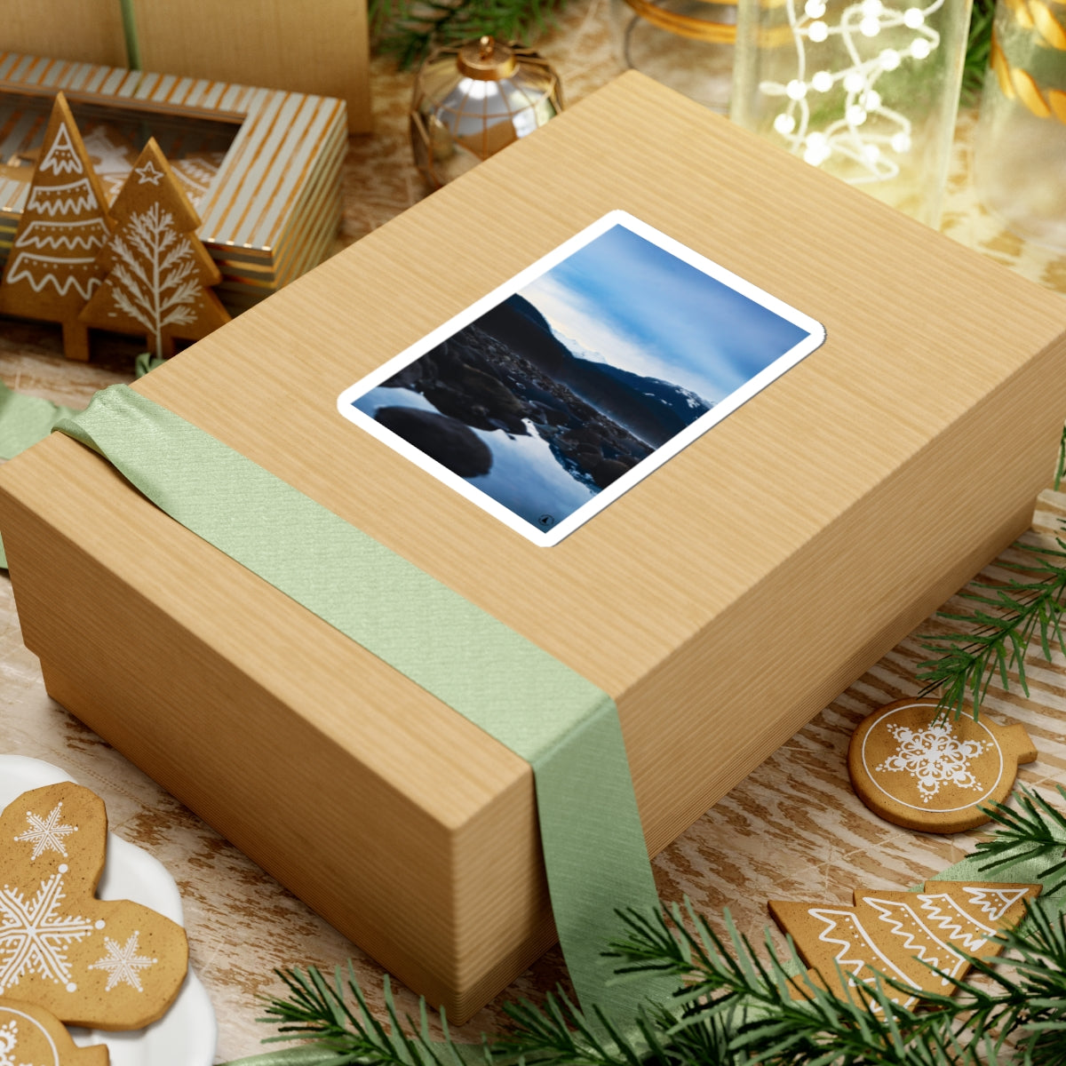 A glossy kiss-cut vinyl sticker capturing a quiet mountain stream at dusk. Deep blues and soft twilight tones bring a calm, reflective mood to any smooth surface — from laptops and journals to window panes. The durable vinyl and permanent acrylic adhesive hold fast while the scratch-resistant finish preserves the vivid eco-solvent printed colors. Choose white or transparent backing and one of four sizes to match your space. It applies smoothly with minimal bubbles and adds a subtle, nature-inspired touch to daily gear and indoor decor.