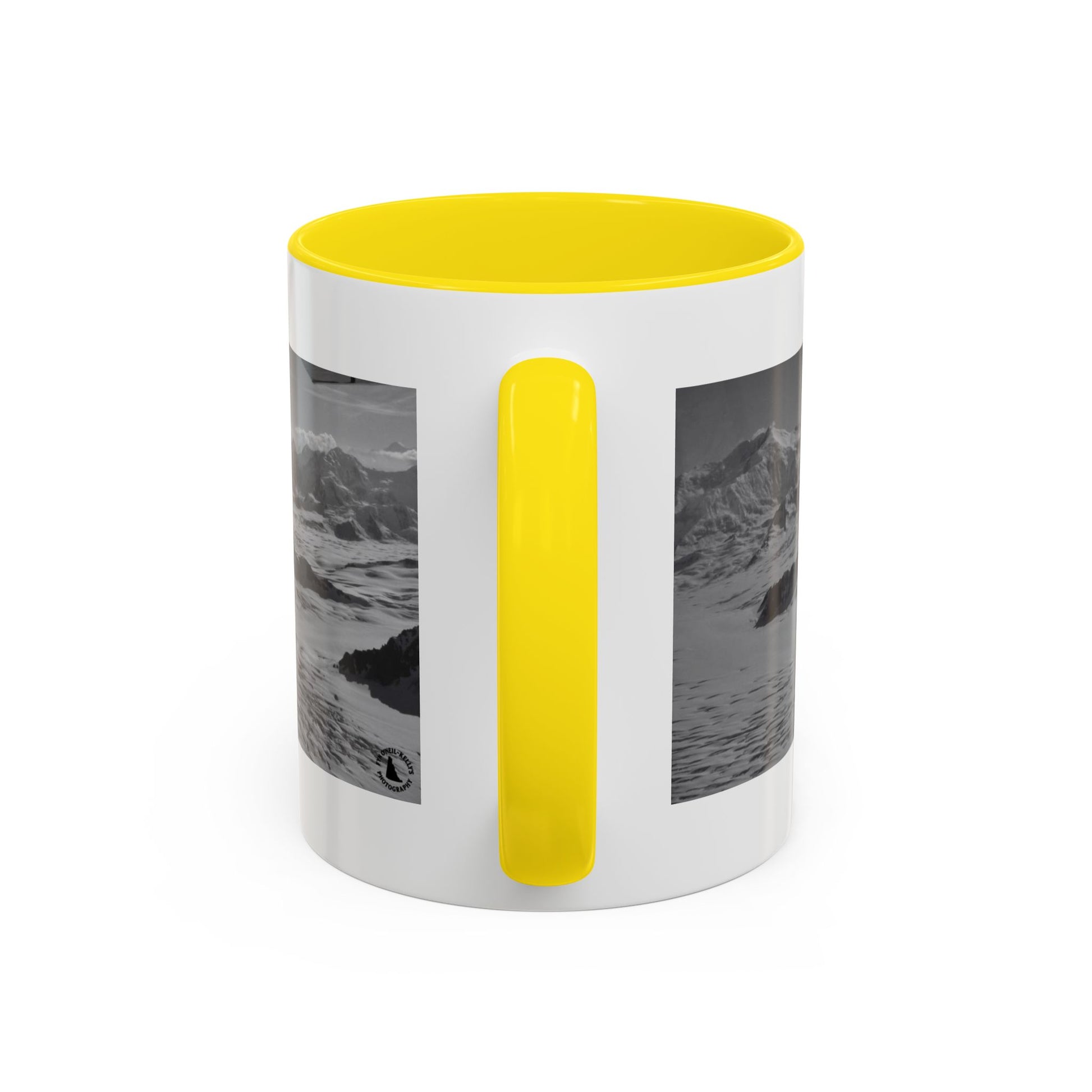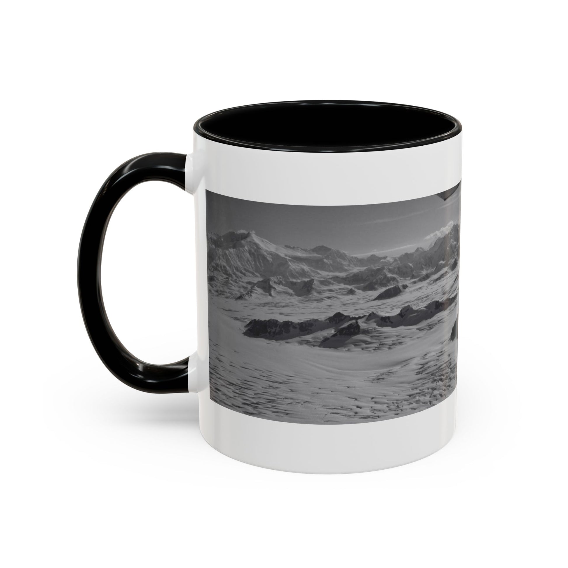This 11oz/15oz ceramic mug brings a quiet, mountain-morning mood to your everyday ritual. A high-contrast black-and-white alpine panorama wraps around the glossy white body, while the colored interior and handle add a subtle modern edge. Hold it by the C-shaped handle and feel the smooth ceramic warmth as you sip coffee, tea, or cocoa. The imagery reads like a paused breath β wind over snow, jagged ridgelines, the hush of altitude β and fits into slow mornings, late-night planning sessions, or the small pauses between outdoor adventures.