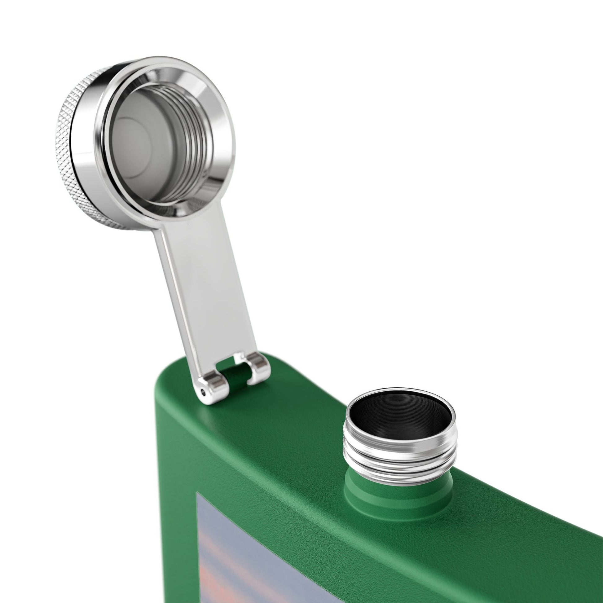 A compact 6oz stainless steel flask featuring a serene swan photograph against a pastel sunrise. The powder-coated body feels smooth in hand and the secure, leak-proof lid keeps contents safe while the double-wall construction helps maintain temperature on short outings. Lightweight and discreet, this flask slips into a jacket pocket or picnic basket and brings a quiet, nature-inspired touch to evenings by the water or small, thoughtful gatherings. The image is printed with UV DTF for sharp, lasting color; hand washing preserves the finish.